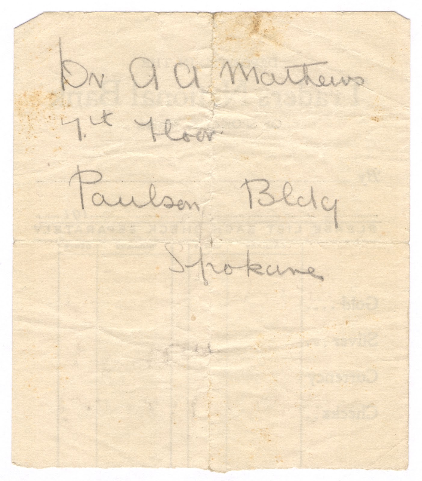 This letter’s envelope contained three pieces of paper. One appeared to be a receipt written on a physician’s prescription pad, another appears to be a physician’s address written on the back of a bank deposit form. It’s not clear whether these items were original to the letter or added later for safekeeping. Scans of both can be found in part one of this article (Mortarboard #99, page 1305), along with a discussion of their possible significance.